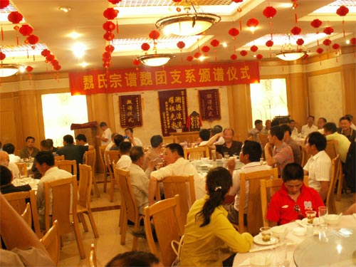 由唐代宰相魏征后人(傳至83代)魏氏宗族修譜成功及頒譜儀式昨日在合肥省軍區八一賓館隆重舉行,來(lái)自北京、上海、廣州、徐州、蚌埠、合肥等地魏氏宗族知名人士、二百多人,濟濟一堂,大家舉杯慶賀魏氏家族修譜成功。