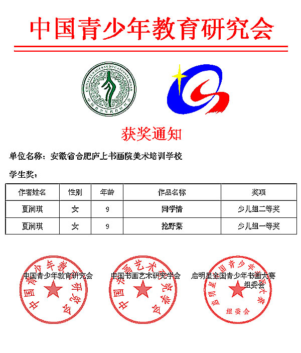 夏潤琪獲獎通知
