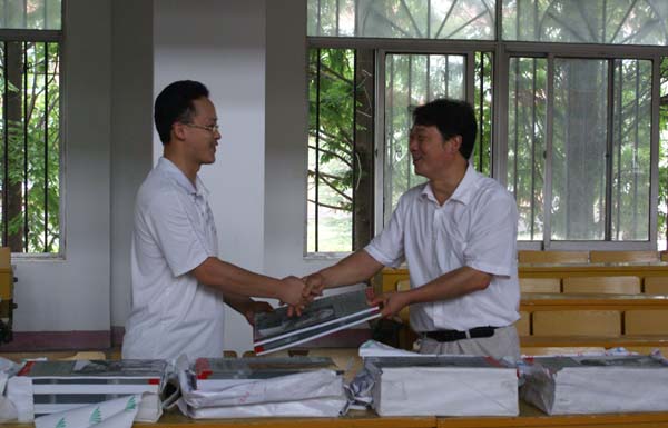 愛(ài)心畫(huà)家魏氏父子在肥東縣教育局捐書(shū)助教現場(chǎng)