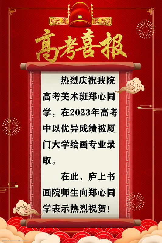 在此,廬上書(shū)畫(huà)全體院師生向鄭心同學(xué)表示熱烈祝賀!