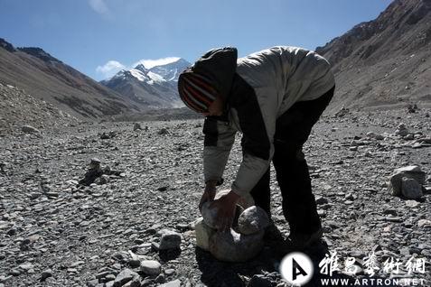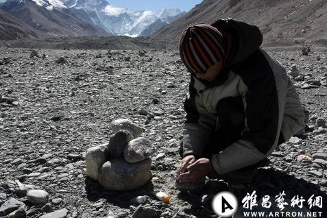 雅昌藝術(shù)網(wǎng)訊(裴剛) 藝術(shù)家兼策展人舒陽(yáng)與藝術(shù)家徐勇及另外幾個(gè)朋友將在1月30日前往西藏拉薩、尼泊爾3周的旅行,并伴有對當地藝術(shù)的考察和隨機的創(chuàng )作。2010年,舒陽(yáng)和徐勇曾去過(guò)一次西藏,舒陽(yáng)在西藏珠峰大本營(yíng)實(shí)施了帶去的藝術(shù)方案――現場(chǎng)藝術(shù)《防曬霜》。他在珠峰大本營(yíng)給石頭涂抹防曬霜,并用這些石頭壘瑪尼堆。西藏由于其極端的自然環(huán)境,形成了獨特的地緣文化。由于現代化和全球氣候變暖的影響,西藏的自然和人文正在急遽變化。由于這一地區的生態(tài)環(huán)境極為脆弱,變化將是不可逆的,原有生態(tài)和人文將有消失的危機,F場(chǎng)作品《防曬霜》試圖表達外來(lái)方式與西藏本土傳統方式的交錯關(guān)系。據舒陽(yáng)介紹說(shuō)當時(shí)“當時(shí)高寒,到下午我還得了高原反應,動(dòng)一下都要喘幾下。零下20多度啊!背后是珠峰,石頭感覺(jué)比冰還冷,手都快凍掉了!”