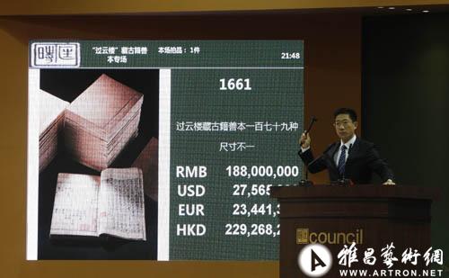 過(guò)云樓藏書(shū)本有四分之三藏于南京圖書(shū)館,過(guò)云樓能否重聚成為一時(shí)的新聞話(huà)題!叭慷际敲襟w自發(fā)的正面報道,這是他沒(méi)有料到的‘策劃’之一!倍瓏鴱姼袊@,七個(gè)城市的巡展,在匡時(shí)的拍賣(mài)歷史上還是第一次,從北京到上海、杭州、南京、蘇州、廈門(mén)、成都、北京等城市,當董總談及到全國巡展時(shí)感概頗多,當時(shí)本來(lái)沒(méi)有定成都,是當地媒體反復要求,才增加了成都的巡展。5月,在全國巡展的過(guò)程中,《過(guò)云樓》視頻首發(fā)面試,制作精良的短片從雅昌藝術(shù)網(wǎng)首發(fā)之后,迅速在各大媒體中傳播,“過(guò)云樓”由此成為春拍中耀眼的“明星”。