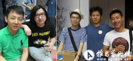 左:藝術(shù)家韓磊和女友、模特張靜;右:UCCA助理館長(cháng)尤洋,空間站總監付曉東,藝術(shù)家侯勇(左起)。