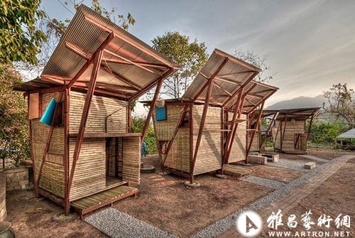 伊朗的一個(gè)避難所,運用最便宜也最常見(jiàn)的材料――竹子來(lái)建造房屋。