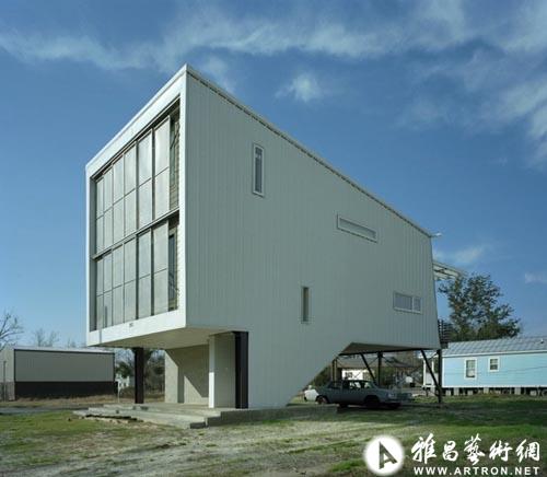 美國密西西比Biloxi樣板屋。Biloxi是美國最窮的地方之一,在卡特里娜颶風(fēng)之后受損嚴重,90%的房屋被毀。這是建筑師設計的抗颶風(fēng)而又經(jīng)濟的樣板屋。