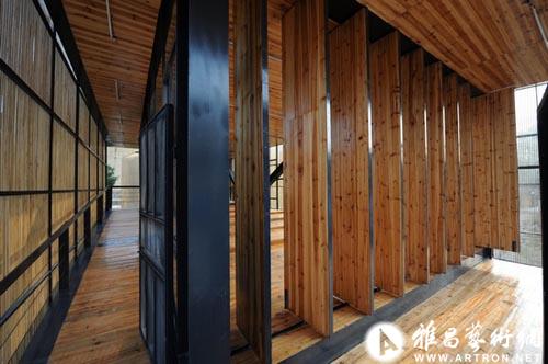 北京郊區懷柔村里的籬苑書(shū)屋是最新的一個(gè)公益項目。這是一個(gè)公益的圖書(shū)館,鋼木結構的建筑用當地農家家家戶(hù)戶(hù)堆積一地的劈柴棍作為建筑的表皮!八械臅(shū)都是朋友們捐贈的,你可以來(lái)看書(shū),甚至可以拿走一本書(shū),前提是你拿三本書(shū)來(lái)?yè)Q!崩顣詵|介紹說(shuō)。雖然和橋上小學(xué)一樣,實(shí)際上建筑都是用了鋼結構,但橋上小學(xué)里被大量使用的當地桉木木材和籬苑書(shū)屋外墻上的劈柴棍一樣,都是就地取材,節約了成本也賦予了這些小體量建筑和當地環(huán)境的切合之感!皶(shū)屋需要有良好的光線(xiàn),那些光線(xiàn)可以從這些柴薪中間散落下來(lái)!崩顣詵|說(shuō)。