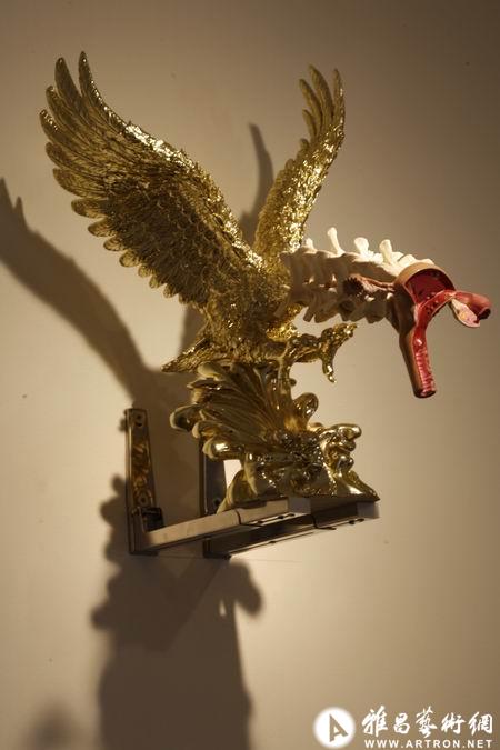 陳天灼 作品局部 子宮頭 牛脊椎脖子的鷹所象征的人們的欲望正撲面而來(lái)