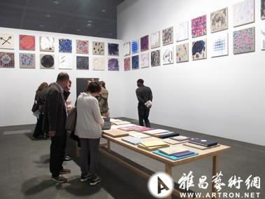 勞拉?歐文斯繪畫(huà)作品旺盛的趣味性特點(diǎn)使其與大型的雕塑作品一樣,令人印象深刻。進(jìn)入她仿設計室的展覽空間,可以看見(jiàn)一系列唱片封面大小的畫(huà)布,到處布滿(mǎn)了動(dòng)作線(xiàn)條、層疊的紋理和各色的顏料。歐文斯并不刻意區分游戲和“藝術(shù)”。這里的每一張畫(huà)布本身都是一個(gè)獨立的世界,有著(zhù)自己的邏輯。其中幾幅作品中刻畫(huà)了旋轉的手,可能表現了時(shí)間的流逝或是時(shí)間的相對荒謬性。她還在一張長(cháng)條桌子上擺滿(mǎn)了說(shuō)明性的插圖書(shū)籍作為人類(lèi)創(chuàng )造力的證據,積極邀請參展者翻看。