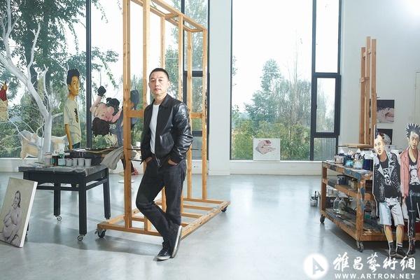 郭偉的工作室位于成都藍頂藝術(shù)區,這里是成都最大的藝術(shù)家聚居地,和北京的798、酒廠(chǎng)、宋莊等地都不同,這里更像是豪華的藝術(shù)桃源,一幢幢的房屋與其說(shuō)是“工作室”,不如說(shuō)更像豪華別墅,望向窗外,是郁郁蔥蔥的綠色,不遠處就是一潭湖水,內部裝飾豪華且有藝術(shù)感,不少藝術(shù)家的“豪宅”都榮登過(guò)室內設計類(lèi)期刊。相比之下,郭偉的這一幢要“寒酸”很多,是更純粹的畫(huà)室。所有相熟的朋友都說(shuō),郭偉是四川最用功的藝術(shù)家,他自己則笑言這是因為他不可改變的生物鐘,每天早晨10點(diǎn)到工作室,晚上五六點(diǎn)鐘離開(kāi),日復一日,幾乎從不間斷。郭偉說(shuō),假如我早去幾個(gè)月,連我們談話(huà)時(shí)坐著(zhù)的沙發(fā)都還沒(méi)有,所有的房間都被用來(lái)“工作”,除了樓上的一間用做會(huì )客,樓下的一間是臺球室。臺球室里擺放著(zhù)一個(gè)巨大的斯諾克臺子,這是他的工作室里唯一與繪畫(huà)無(wú)關(guān)的陳設,但即便是這里四面墻上也掛滿(mǎn)了郭偉的藏品,有William Water的攝影,有岳敏君的版畫(huà),而最貴的一張,則是弗朗西斯?培根的版畫(huà)。郭偉喜歡收藏其他藝術(shù)家的作品,庫房里面堆滿(mǎn)了他這些年的收藏,他很得意地跟我說(shuō),很多畫(huà)廊庫房里的藏品都沒(méi)有這么豐厚。