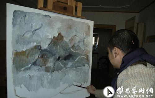“油畫(huà)是我長(cháng)期的專(zhuān)業(yè),今天的藝術(shù)絕不僅僅以材料的劃分就能界定,能滿(mǎn)足藝術(shù)家所表現的一切。今天的藝術(shù)選擇材料已經(jīng)變得很簡(jiǎn)單,更多的是藝術(shù)家想要表現什么。而抽象油畫(huà)雖不是什么新的藝術(shù)形式,但在中國還未被足夠重視,我選擇抽象繪畫(huà)是因為照相技術(shù)的發(fā)展可以讓一個(gè)普通人成為出色的攝影師,而寫(xiě)實(shí)藝術(shù)家用半輩子的辛苦學(xué)習的技術(shù)僅僅是還原照相機一秒鐘就可以完成的事情,我沒(méi)有那么多的時(shí)間。我選擇抽象藝術(shù)更因為我內心的喜歡,我喜歡自然隨意的色彩的表現、線(xiàn)條以及肌理的表現。抽象與感情有關(guān),不是天然生發(fā)出來(lái)的,抽象更多的是一種思想,如何理解你所看到的事物,當我在飛機上俯視大地時(shí),與我在電視和書(shū)籍上看到的一樣熟悉,卻又絕對陌生,我喜歡表達這種看起來(lái)陌生而又熟悉的感覺(jué),畫(huà)出來(lái)我覺(jué)得熟悉,但思考又相對陌生的狀態(tài),這讓我逐漸形成了自己的風(fēng)格!卑酌鬟@樣描述。