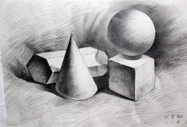 我是初隨魏老師學(xué)習的張雪融,接觸素描已將近一月,收獲良多。由初學(xué)時(shí)在老師的指導下機械地練習線(xiàn)條基礎,到逐漸嘗試表現比例與結構關(guān)系,后到感受造型、空間、明暗、強弱、虛實(shí)的表現手法循序漸進(jìn)。在每次練習時(shí)老師都會(huì )因材施教,由淺入深循循善誘,讓我能夠進(jìn)一步提高造型的準確性、內在結構的科學(xué)性以及畫(huà)面整體的層次感。